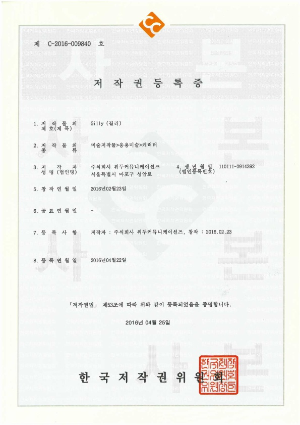 [한국/저작권] 길리 페이지 정보 작성자 WeDu 댓글 0건 조회 5,942회 작성일 19-05-30 19:07 본문 2016-04-22 저작권 C-2016-009840 길리 / 미술저작물>응용미술>캐릭터 List Previous[한국/저작권] 나무트 19.05.30 Next[한국/저작권] 리안의 수학 모험 19.05.30